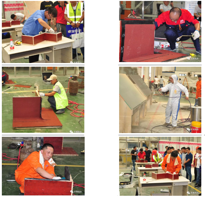 技能賽包括改性瀝青防水卷材施工(單人賽)、高分子卷材施工(單人賽)、噴涂施工(雙人賽)三項施工技能,選手們多少次揮汗如雨,即使再熱的天氣也擋不住選手們參賽的熱情,選手們以嫻熟的技術展示出防水工職業技能人才拼搏的現代精神風貌。
