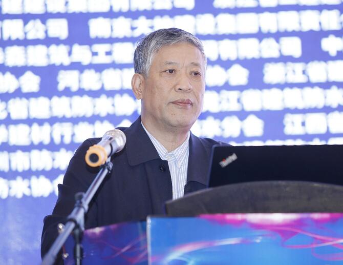 中國工程院院士肖緒文作《工程防水研究及其標準編制》的報告,分析了我國工程防水現狀及存在的問題,分享了國外工程防水的先進經驗,提出了我國工程防水發展重點和滲漏防治對策,介紹了《建筑與市政工程防水通用規范》研編成果。
