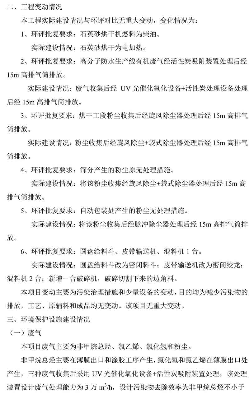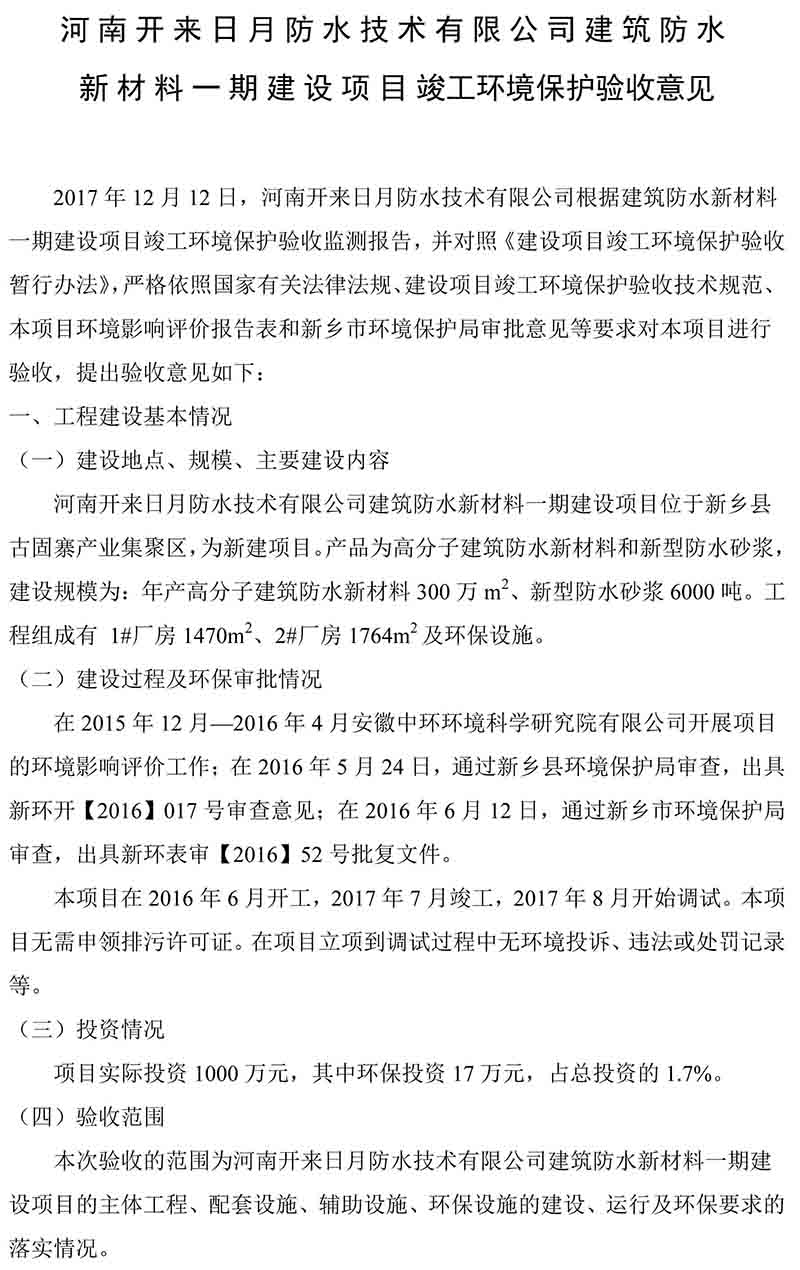 建筑防水新材料一期建設(shè)項(xiàng)目竣工環(huán)保驗(yàn)收監(jiān)測結(jié)論的公告